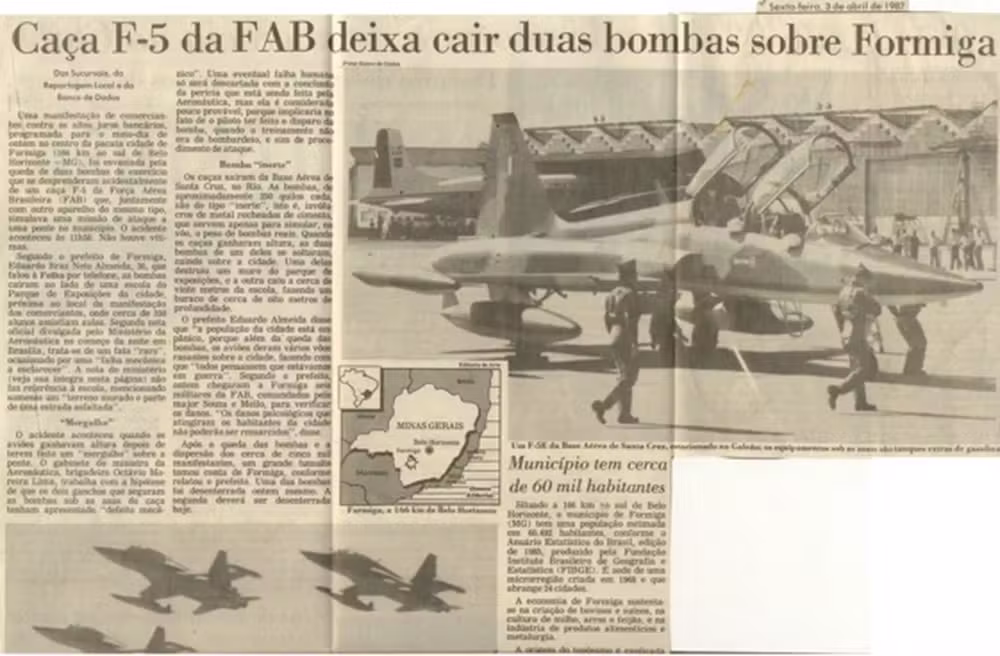 O dia 2 de abril de 1987 entrou para a história de Formiga. Em plena tarde de quinta-feira, duas bombas despencaram do céu, lançadas acidentalmente por um caçada Força Aérea Brasileira (FAB) durante um treinamento.