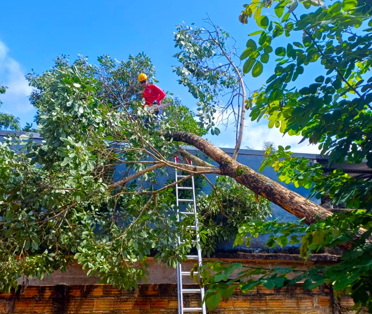 Ao chegarem ao local, os bombeiros constataram que uma árvore de médio porte havia caído, atingindo parcialmente a estrutura metálica de uma residência próxima. Após a avaliação da área, foi verificado que não houve danos ao imóvel nem risco aos moradores.