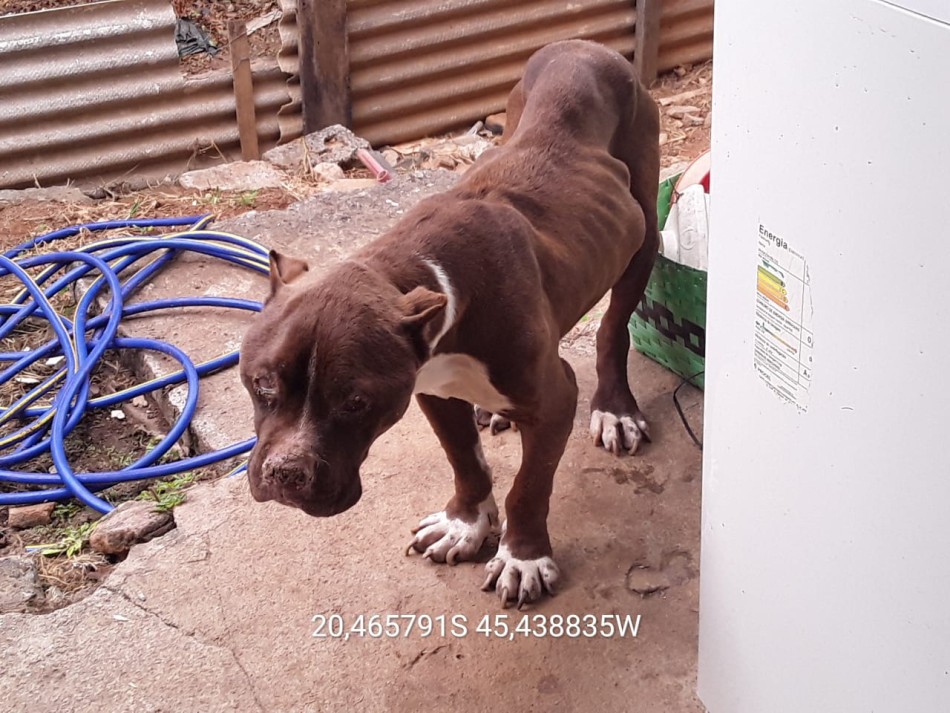 No terceiro atendimento, ocorrido no bairro Areias Brancas, referente a denúncia do crime dos maus tratos a animais referente a um cão da raça American Pit Bull Terrier.