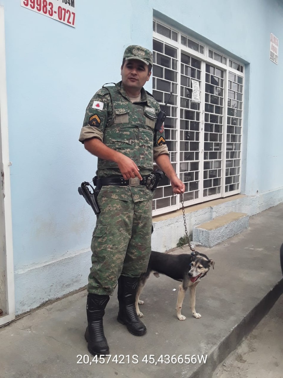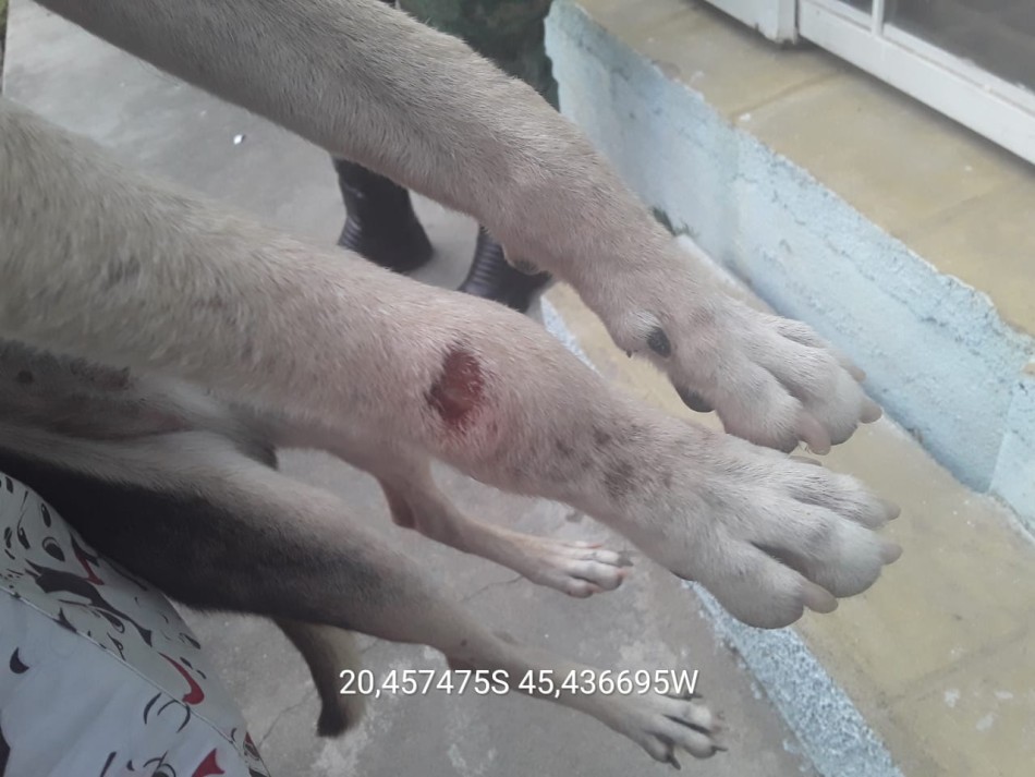 No local, a equipe da PM de Meio Ambiente compareceu, juntamente com a veterinária responsável pelo Codevida, e se deparou com o referido animal que estava bastante magro e apático, com lesões e descamações na região do focinho e do olho direito e com unhas exacerbadamente grandes e ainda apresentando sinais de leishmaniose canina, conforme apurado pela médica veterinária responsável.