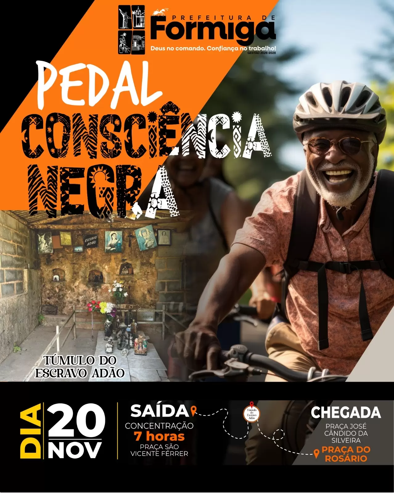 O município de Formiga no dia 20 de novembro em comemoração ao Dia da Consciência Negra, terá um pedal especial ‘’Pedal da Consciência Negra’’ organizado pelo Departamento de Esportes e da Secretaria de Cultura. O início do evento ocorrerá às 7 h, na Praça São Vicente Férrer (Praça da Matriz) e a saída está marcada para às 8h.