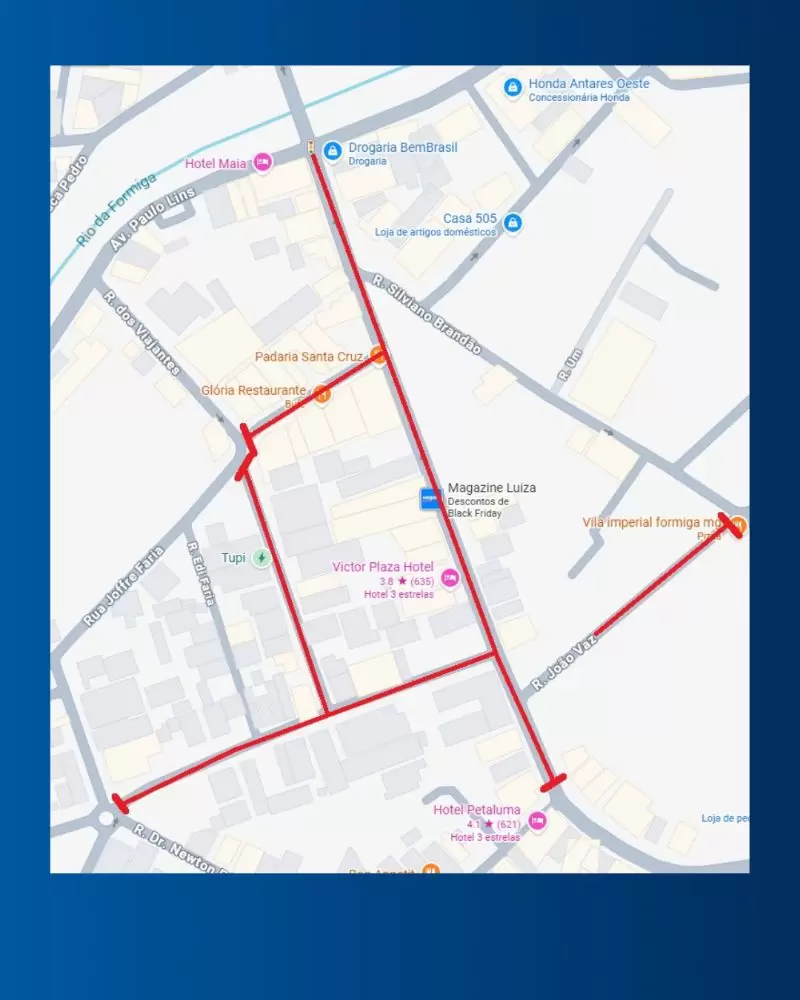 A medida foi adotada em razão da realização de um evento natalino na rua Barão de Piumhi. Segundo a administração municipal, o bloqueio tem como objetivo garantir a segurança dos participantes e do público, além de assegurar a organização e o bom andamento da programação.