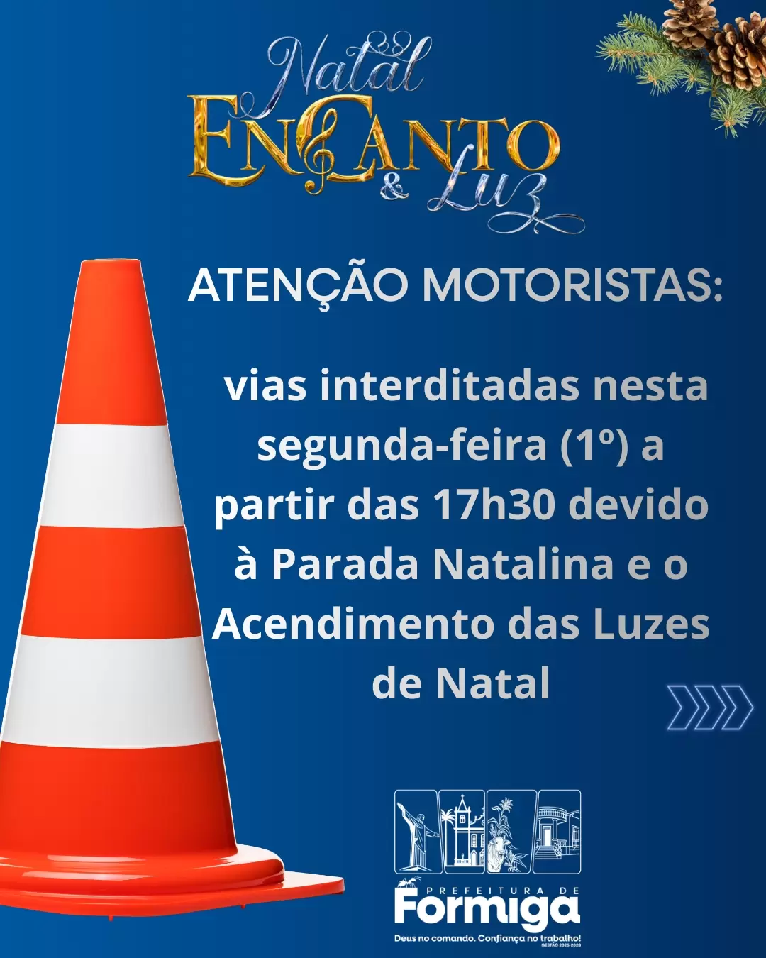 A Prefeitura de Formiga, por meio da Superintendência Municipal de Trânsito, informou que algumas vias da cidade serão interditadas temporariamente nesta segunda-feira (1º), a partir das 17h30.