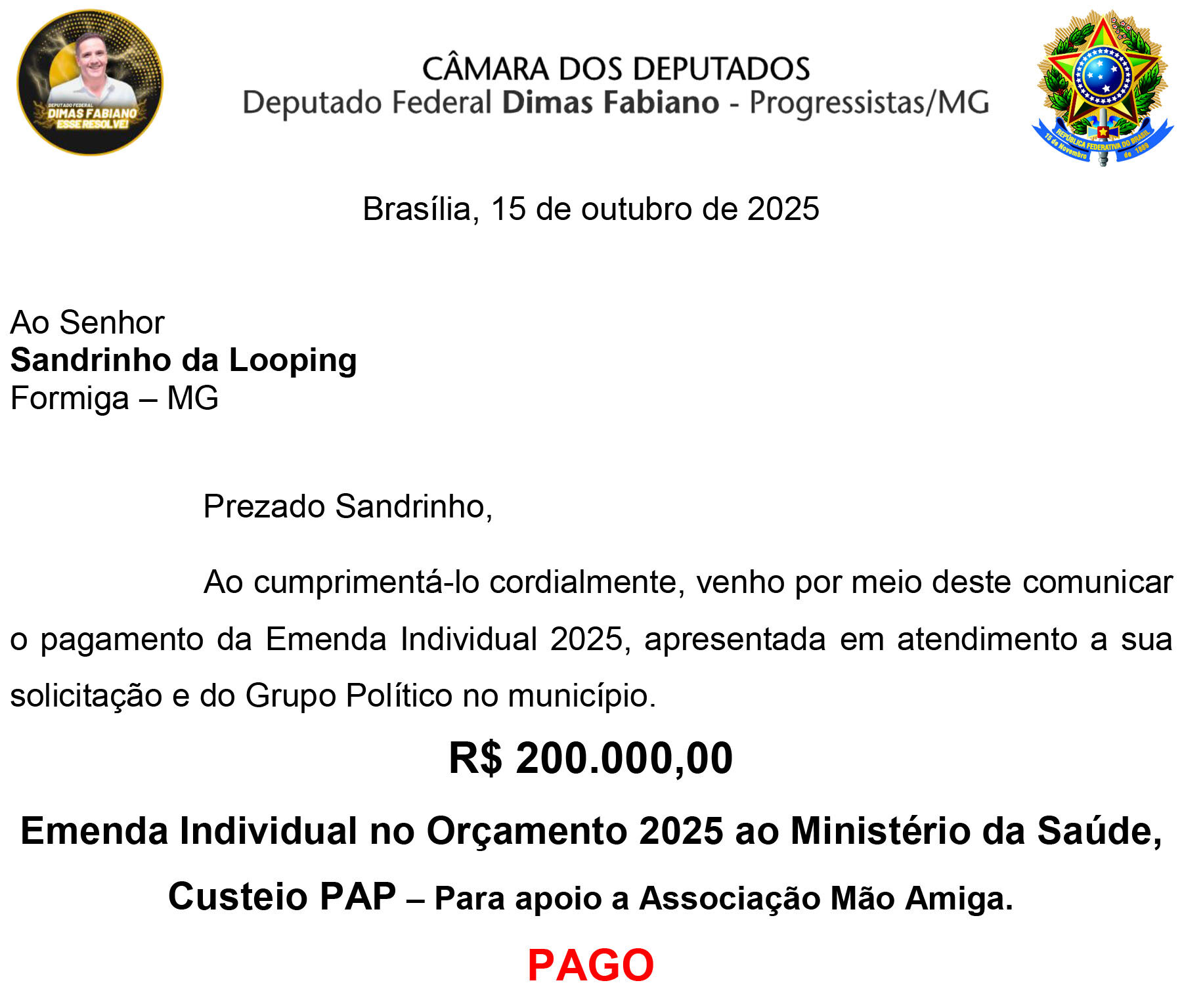 Sandrinho Looping -Emenda-Individual-2025 / Foto: Divulgação