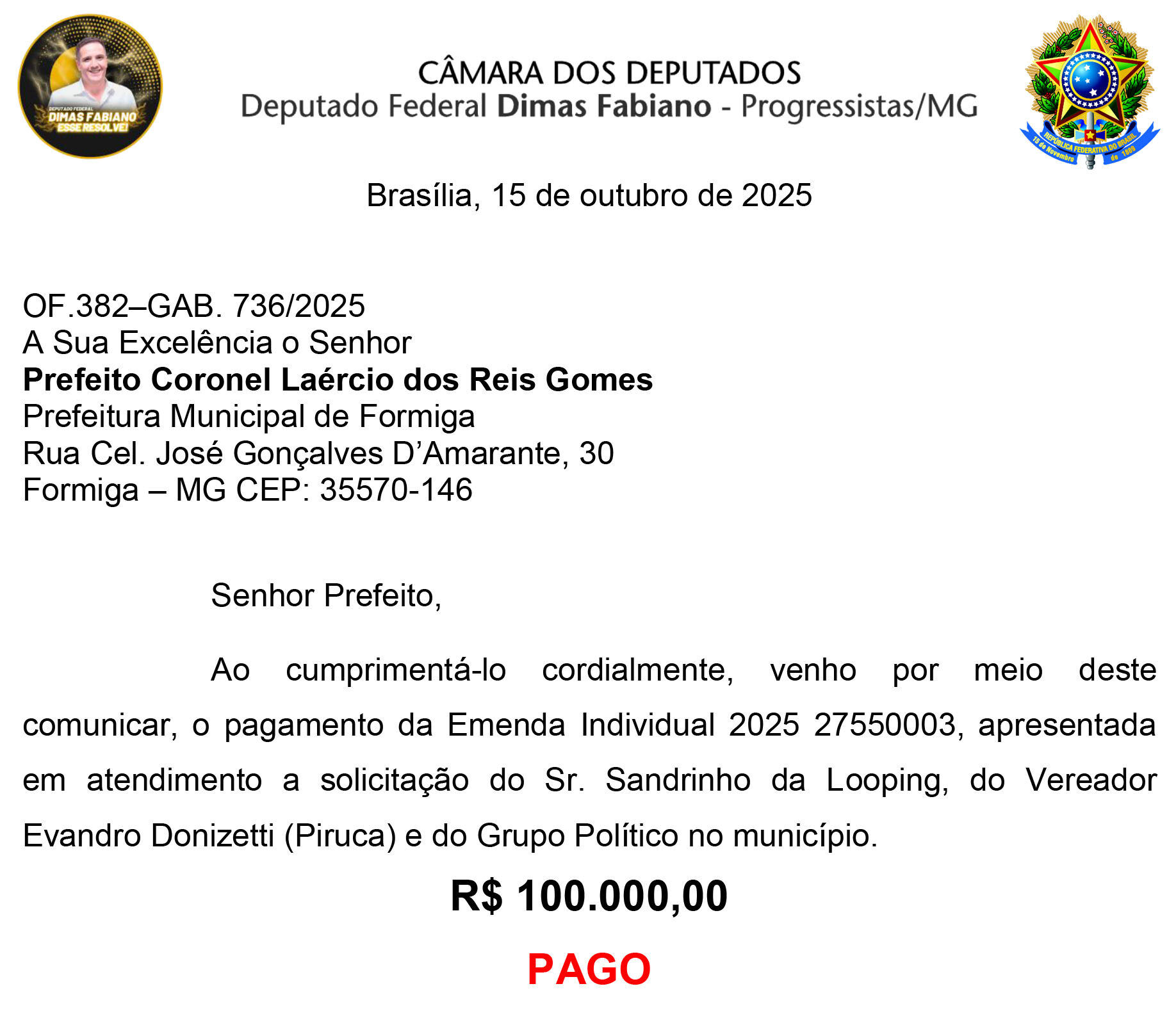 Prefeitura de Formiga – EmendaIndividual-2025 / Foto: Divulgação