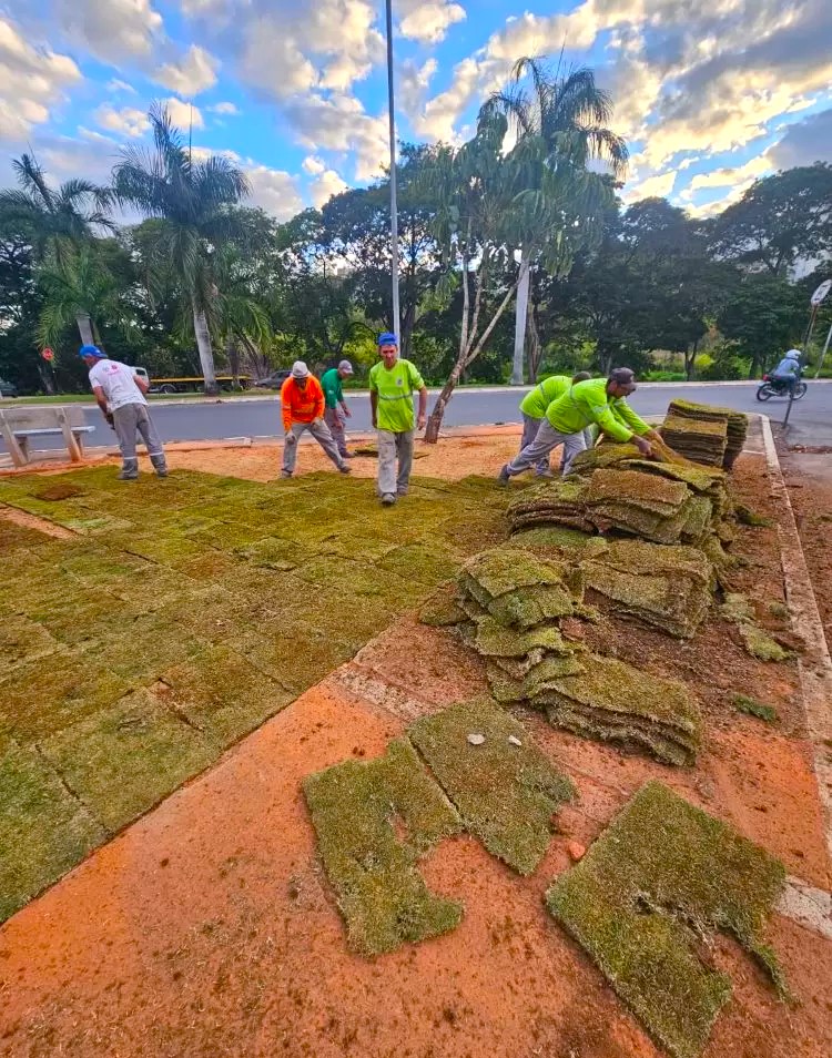 O plantio de grama em placas tem como objetivo melhorar o aspecto paisagístico da área e promover benefícios ambientais. Segundo a Secretaria de Gestão Ambiental, a vegetação contribui para o conforto térmico, ajuda a amenizar as ilhas de calor e melhora a qualidade do ar. Além disso, a grama auxilia no controle da erosão do solo, facilita a infiltração da água e valoriza o espaço público.