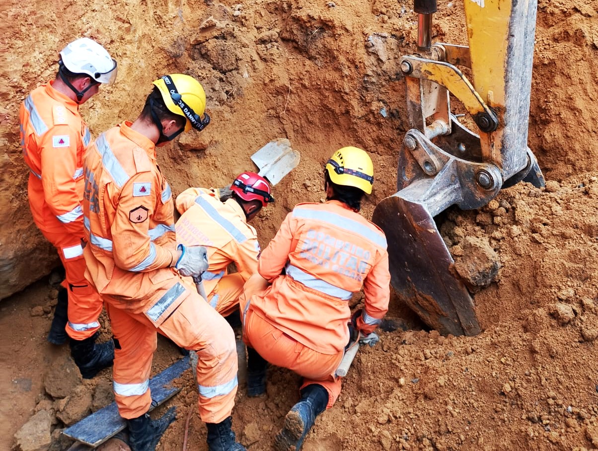 Enquanto isso, os bombeiros continuaram a escavar o terreno e estabilizar a área para acessar a segunda vítima. Após a remoção do material que a cobria, o médico do SAMU constatou o óbito no local.